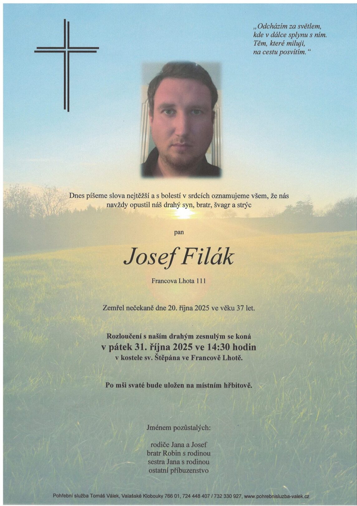 Smuteční oznámení Josefa Filáka