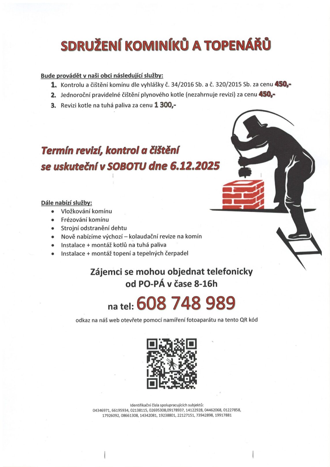 Sdružení kominíků a topenářů bude provádět revize, kontroly a čištění kotlů a komínů – 6.12.2025