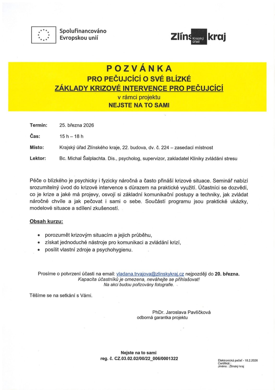 Pozvánka na seminář pro osoby pečující o své blízké – 25.3.2026
