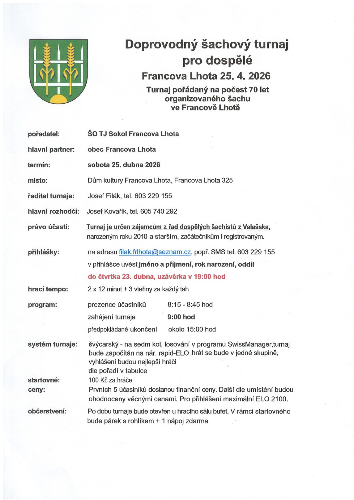 Šachový turnaj pro dospělé – 25.4.2026