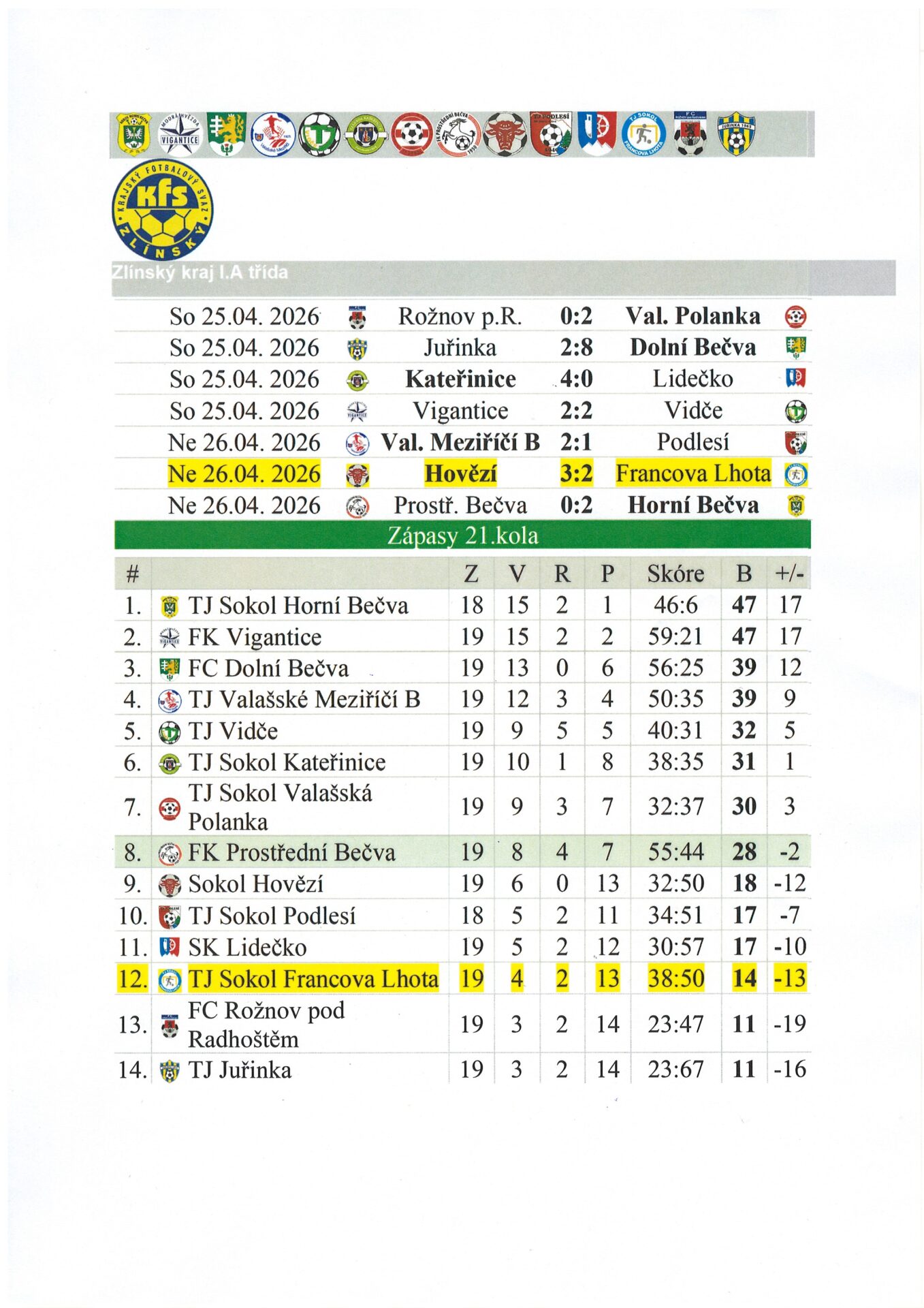 Výsledky fotbalu z 26.4.2026