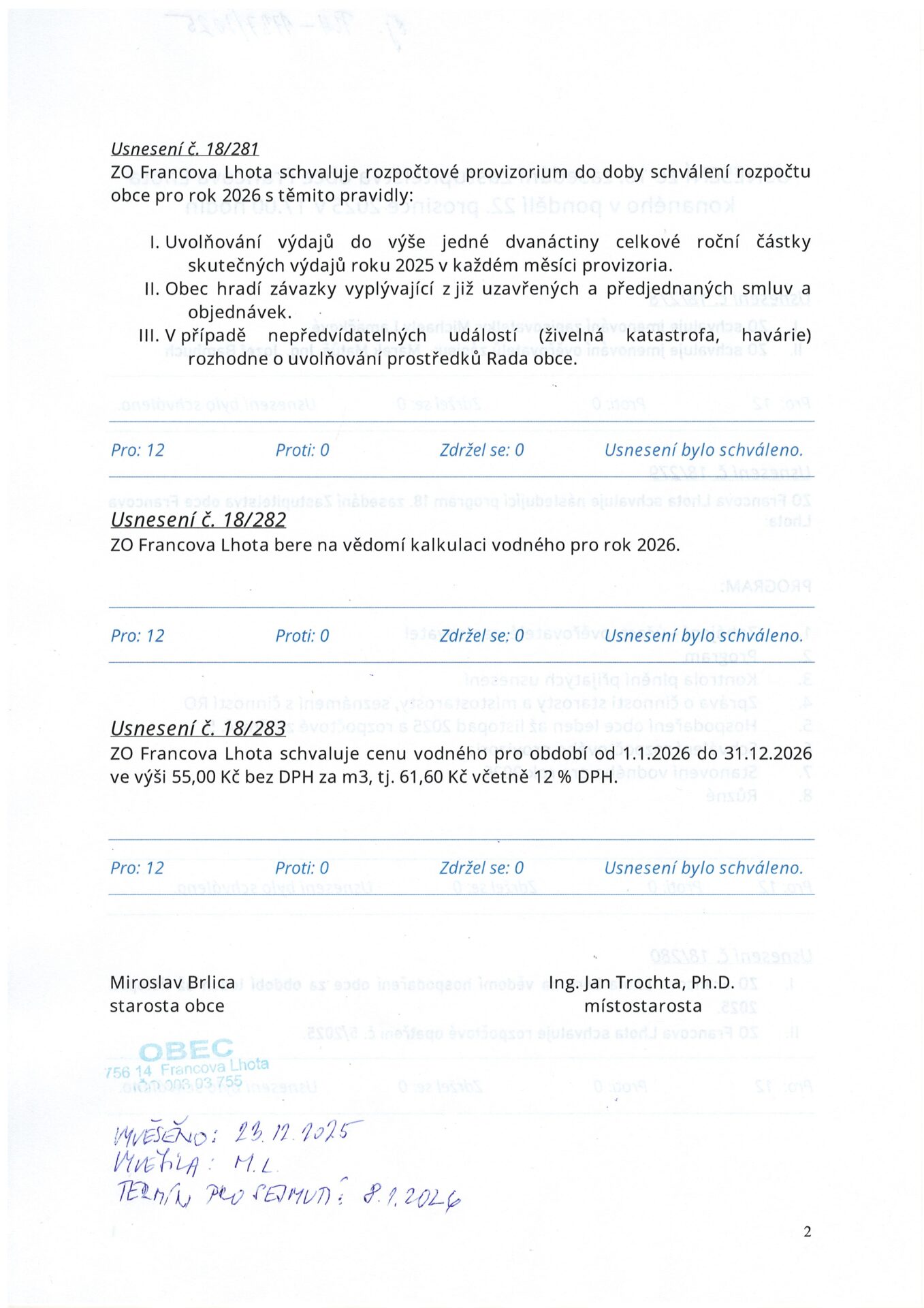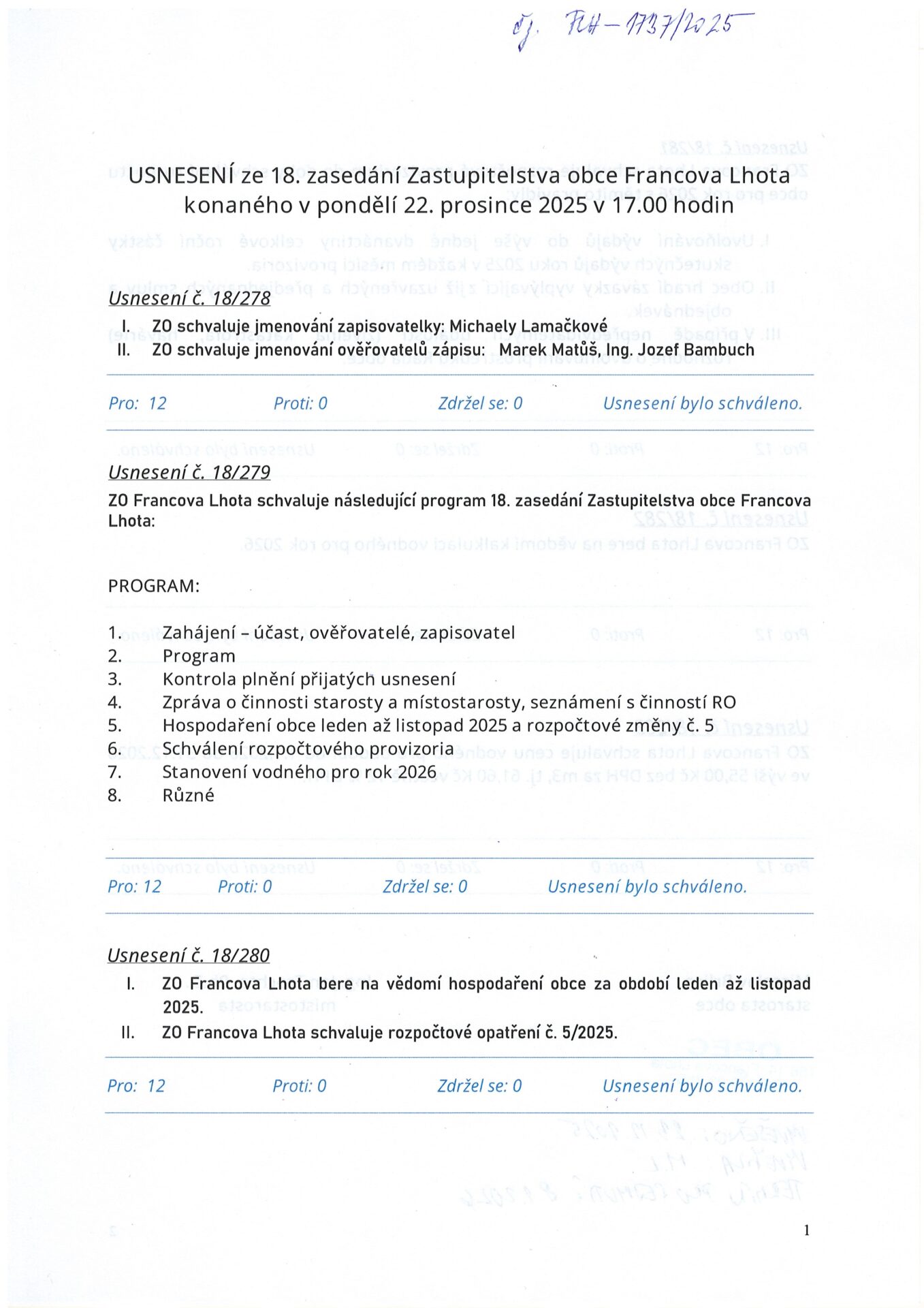 Zemědělské družstvo Francova Lhota zve srdečně všechny své členy na vánoční besedu, která se koná ve čtvrtek 11. prosince 2025 v 16.00 hodin v jídelně družstevního domu.